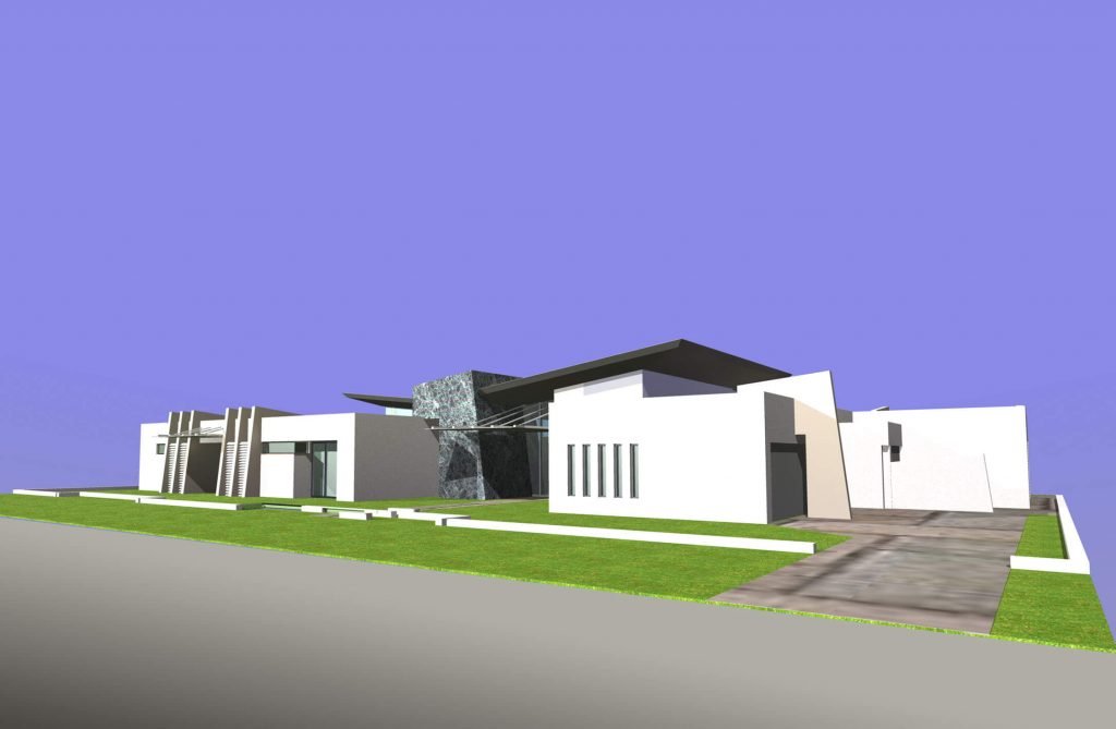 Project Description: A large 5 bedroom house for a couple with adult children. The house was required to be on one level but maintain a “presence” in the streetscape.