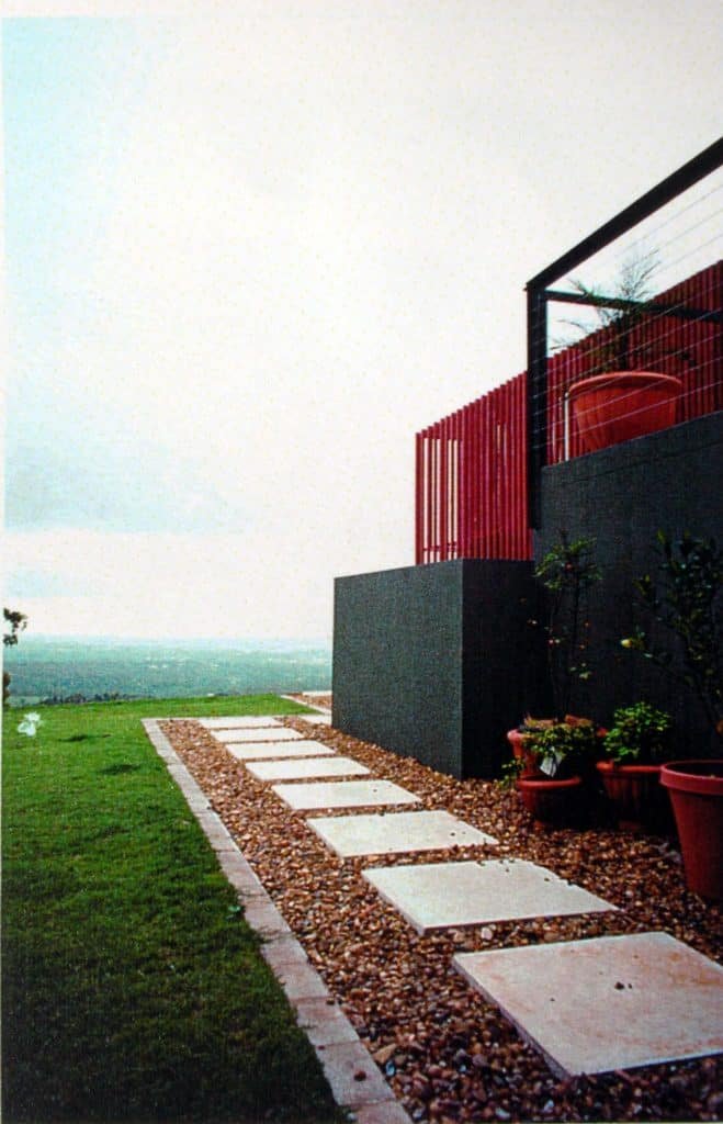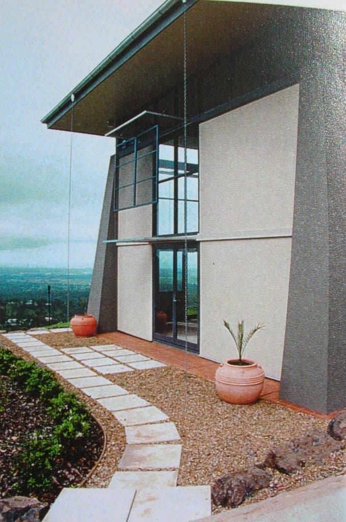 Project description: The project was a new home for a family with three teenage boys. Located in the Gold Coast Hinterland, the site was steeply sloping with a sweeping view of the coast and ocean. Extensive civil works were undertaken to develop a flat pad for the new house. The house was stepped over a number of levels to take advantage of the site and included a large billiard room at lower ground, moving up through the formal lounge to the kitchen and master bedrooms with children’s bedrooms on the upper level. Features included large, operable open timber doors and a horizon edge pool overlooking the view.